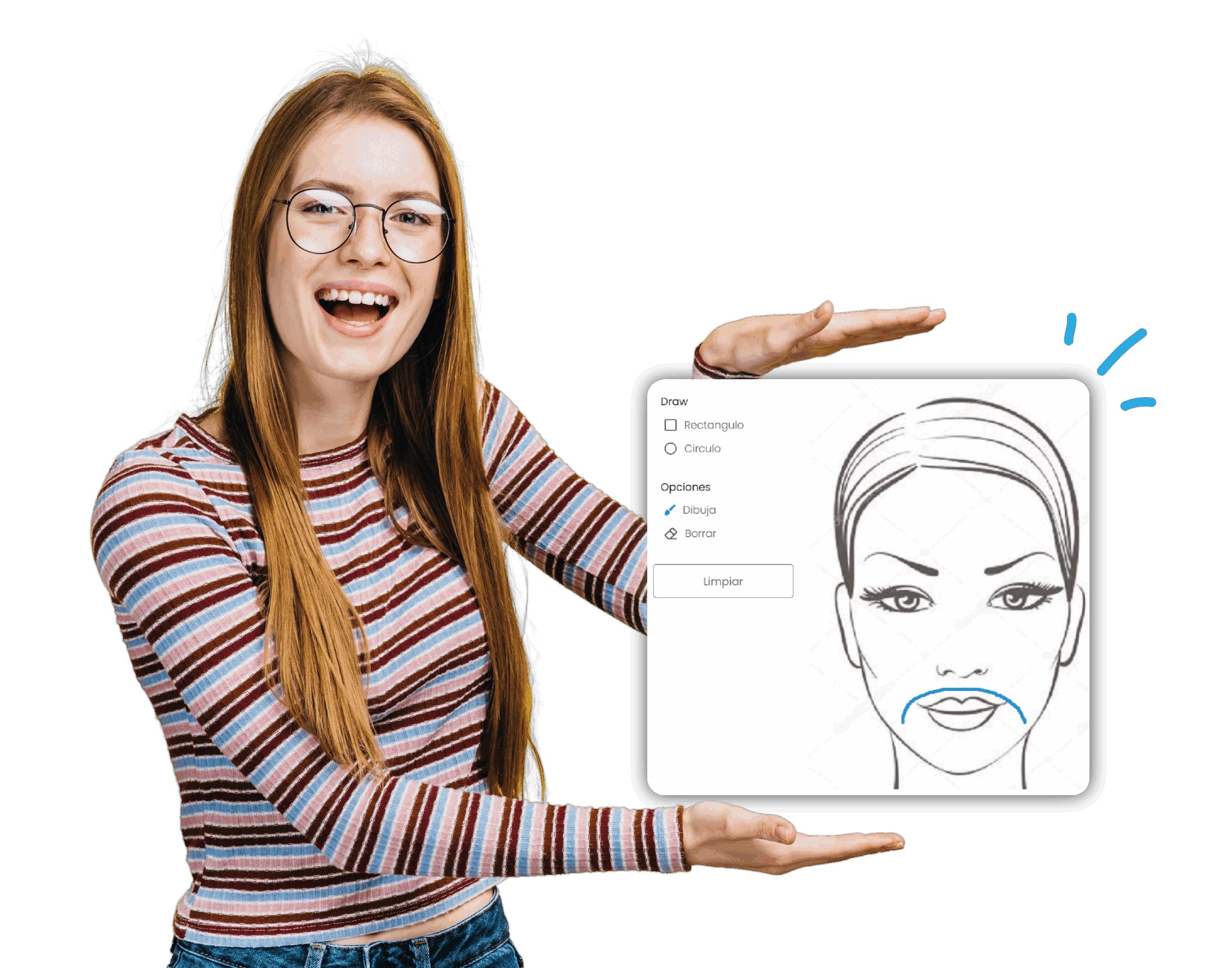 Dibuja libremente el rostro femenino o masculino a mano alzada, adaptando completamente el esquema a las particularidades y necesidades de cada paciente.