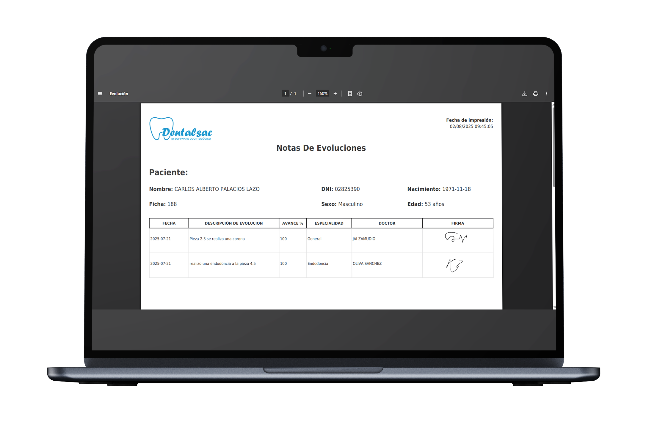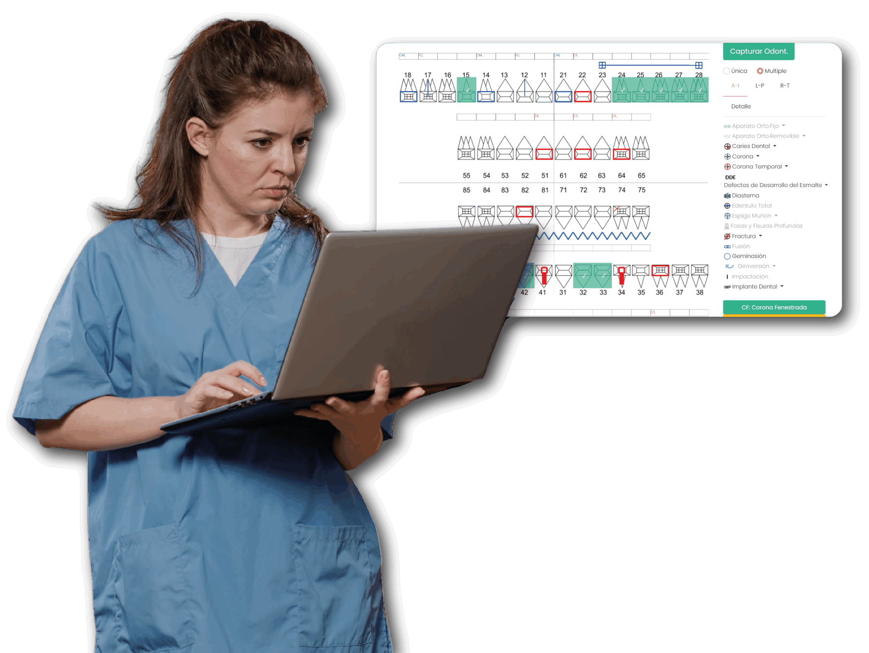 Registra anamnesis, evolución, odontograma y controla toda la historia clínica con precisión, rapidez y seguridad digital